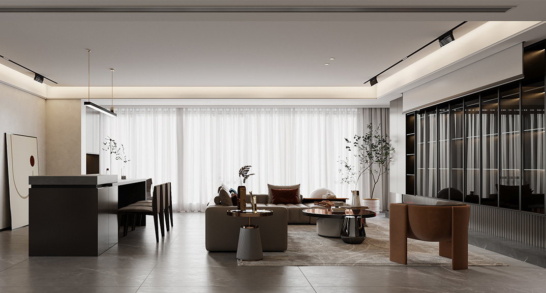 以簡(jiǎn)潔、清晰和功能性為特征的室內(nèi)設(shè)計(jì);它主要強(qiáng)調(diào)了空間的簡(jiǎn)化和精煉,追求線條簡(jiǎn)單、空間通透、色彩明亮、材質(zhì)自然等特點(diǎn),注重形式與功能的結(jié)合。他們希望有一個(gè)時(shí)尚、現(xiàn)代的功能性空間,在整個(gè)空間的設(shè)計(jì)上用了暖灰調(diào)來(lái)與簡(jiǎn)約的線條感來(lái)相呼應(yīng),能改造出一個(gè)通透、流暢的空間感。