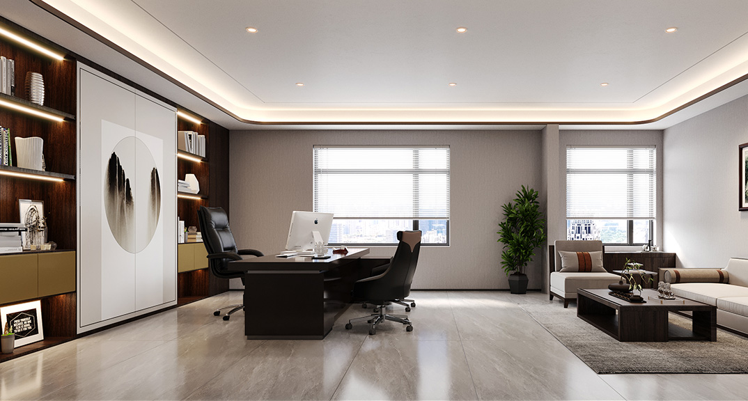 河山別墅300㎡別墅書房新中式風(fēng)格裝修案例效果圖