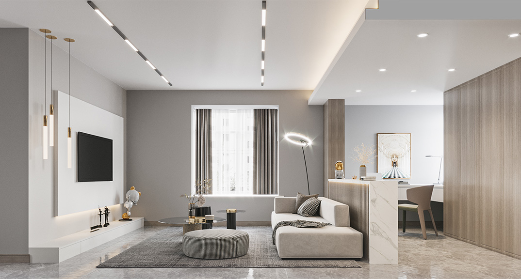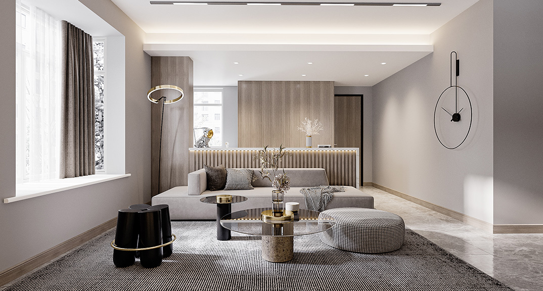 以簡潔、清晰和功能性為特征的室內(nèi)設(shè)計;它主要強調(diào)了空間的簡化和精煉,追求線條簡單、空間通透、色彩明亮、材質(zhì)自然等特點,注重形式與功能的結(jié)合。他們希望有一個時尚、現(xiàn)代的功能性空間,在整個空間的設(shè)計上用了暖灰調(diào)來與簡約的線條感來相呼應(yīng),能改造出一個通透、流暢的空間感。