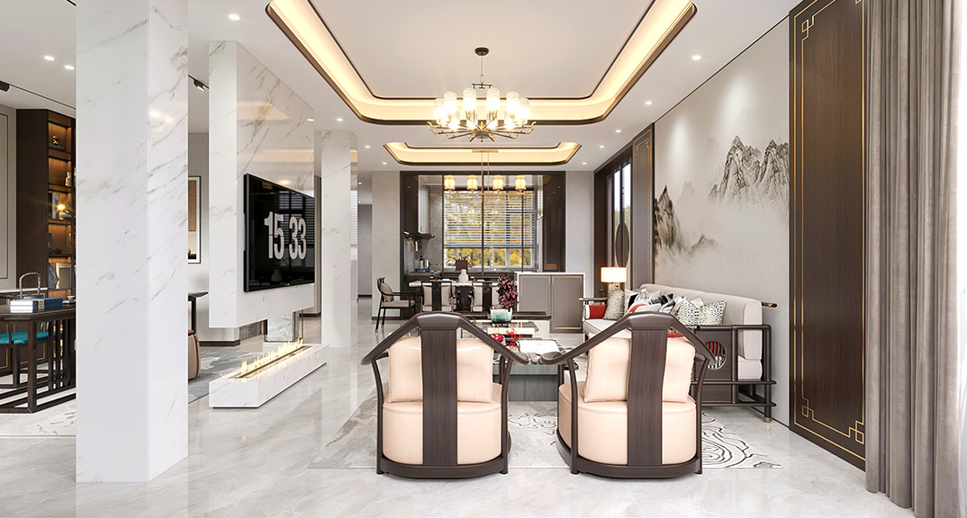 仟佰墅150㎡別墅上疊客廳沙發(fā)新中式風(fēng)格裝修案例效果圖.jpg