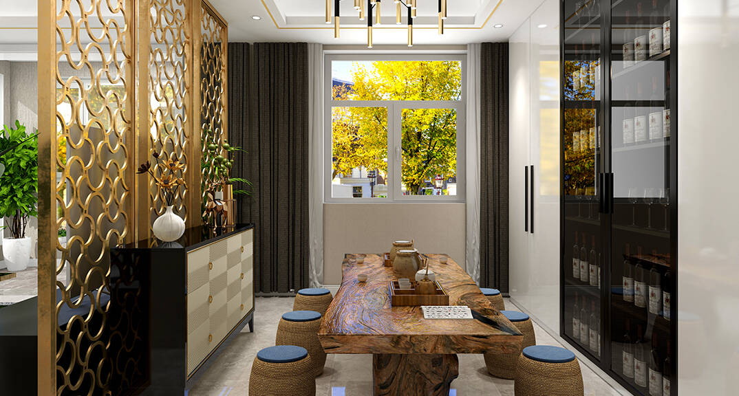楓林小鎮(zhèn)160㎡聯(lián)排別墅新中式風(fēng)格裝修案例效果圖