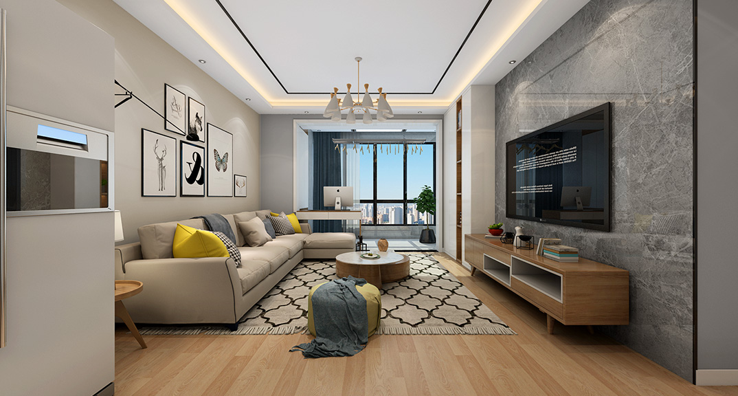 壹號學府152㎡三室兩廳客廳現(xiàn)代風格裝修案例效果圖.jpg