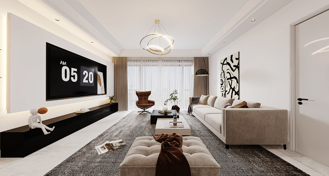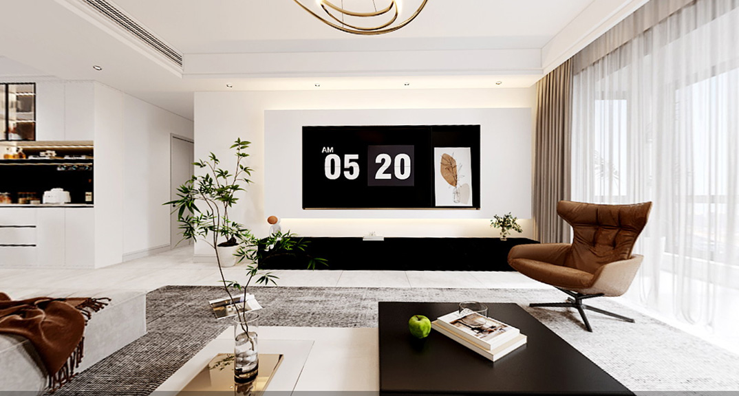 以簡潔、清晰和功能性為特征的室內(nèi)設(shè)計;它主要強調(diào)了空間的簡化和精煉,追求線條簡單、空間通透、色彩明亮、材質(zhì)自然等特點,注重形式與功能的結(jié)合。他們希望有一個時尚、現(xiàn)代的功能性空間,在整個空間的設(shè)計上用了暖灰調(diào)來與簡約的線條感來相呼應(yīng),能改造出一個通透、流暢的空間感。