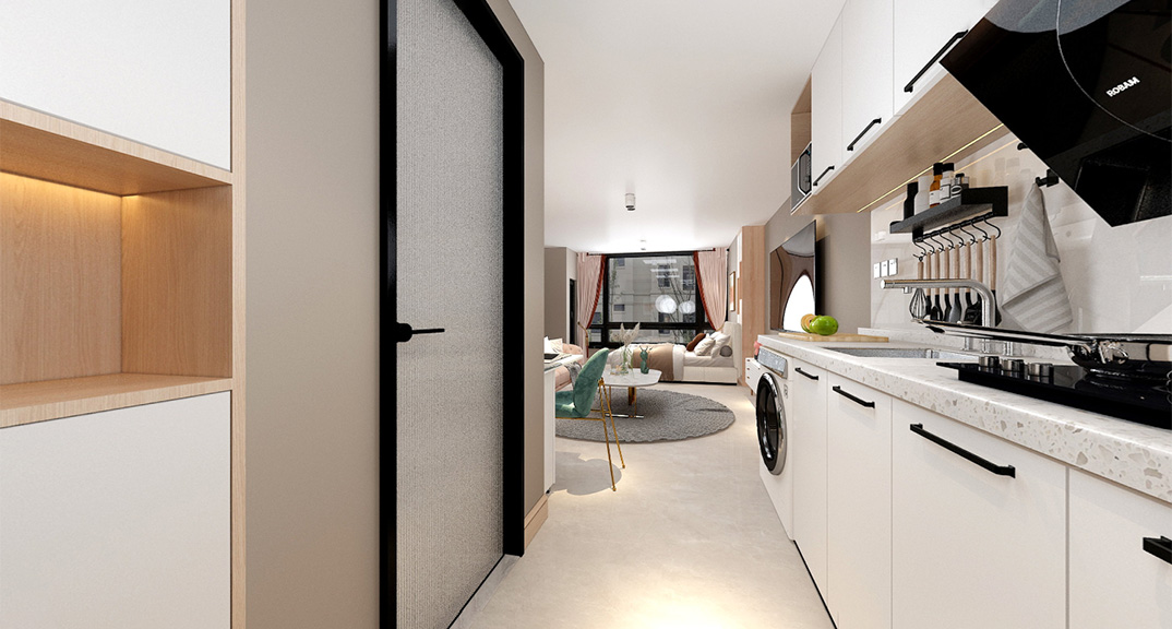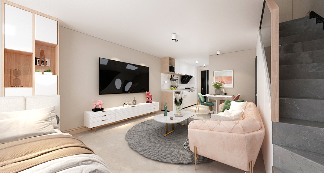 以簡潔、清晰和功能性為特征的室內(nèi)設(shè)計;它主要強(qiáng)調(diào)了空間的簡化和精煉,追求線條簡單、空間通透、色彩明亮、材質(zhì)自然等特點,注重形式與功能的結(jié)合。他們希望有一個時尚、現(xiàn)代的功能性空間,在整個空間的設(shè)計上用了暖灰調(diào)來與簡約的線條感來相呼應(yīng),能改造出一個通透、流暢的空間感。