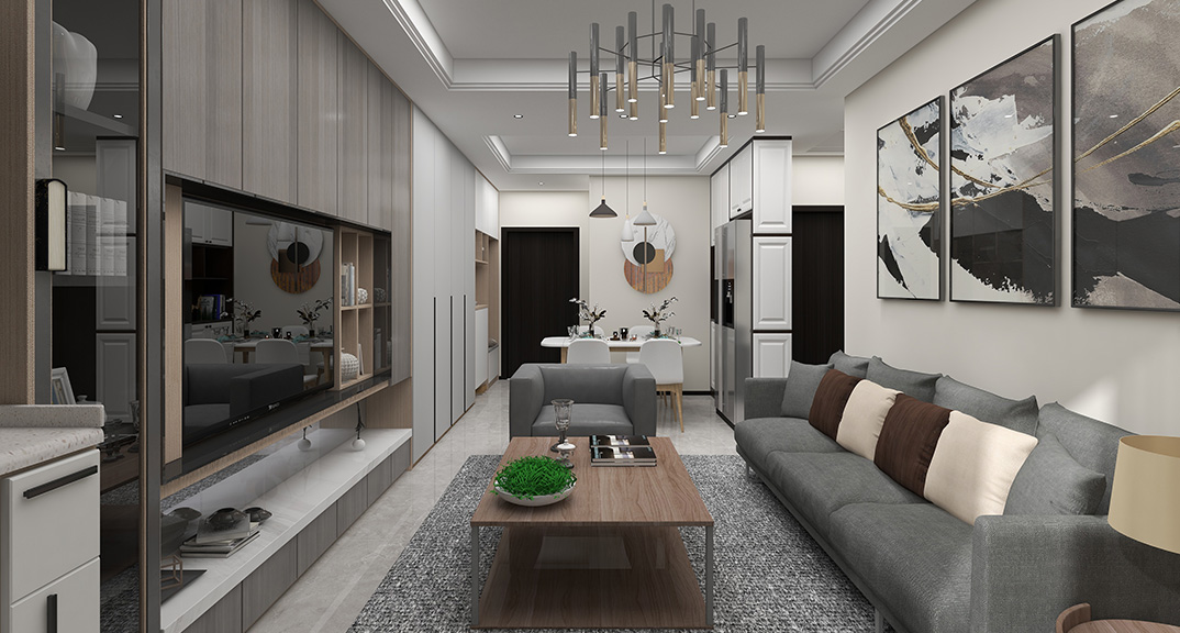 以簡潔、清晰和功能性為特征的室內(nèi)設(shè)計;它主要強調(diào)了空間的簡化和精煉,追求線條簡單、空間通透、色彩明亮、材質(zhì)自然等特點,注重形式與功能的結(jié)合。他們希望有一個時尚、現(xiàn)代的功能性空間,在整個空間的設(shè)計上用了暖灰調(diào)來與簡約的線條感來相呼應(yīng),能改造出一個通透、流暢的空間感。