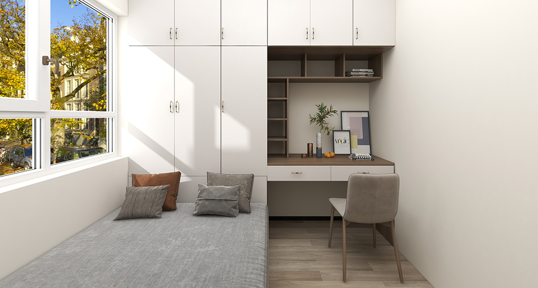保利時代78㎡兩室兩廳臥室現(xiàn)代簡約風(fēng)格戶型研發(fā)效果圖