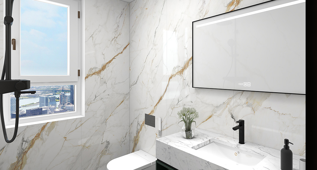 保利時代98㎡三室兩廳衛(wèi)生間輕奢風(fēng)格戶型研發(fā)效果圖