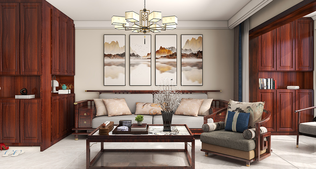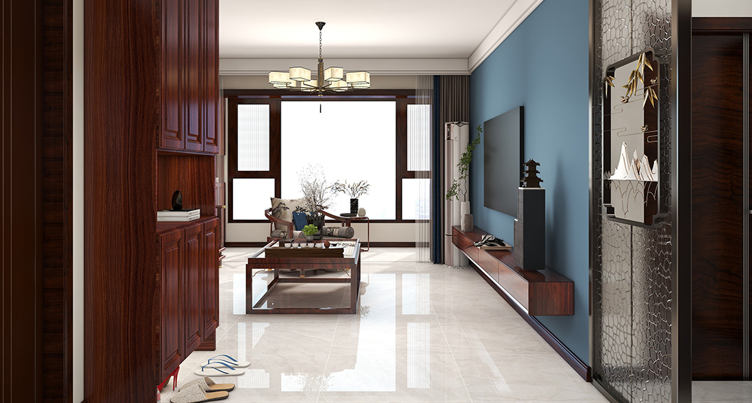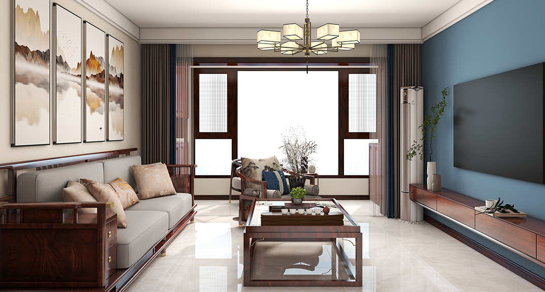 保利時代98㎡三室兩廳客廳中式風(fēng)格戶型研發(fā)效果圖