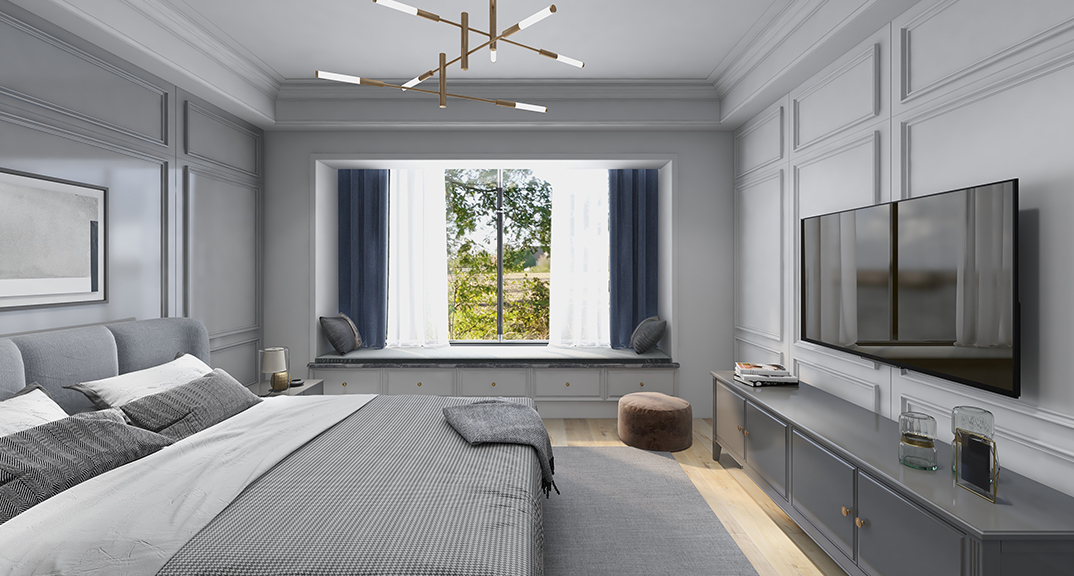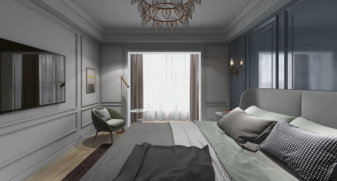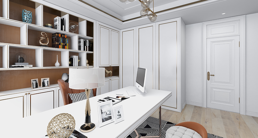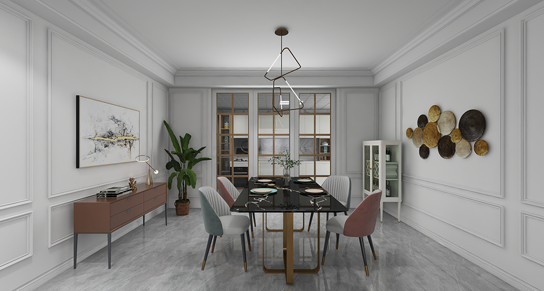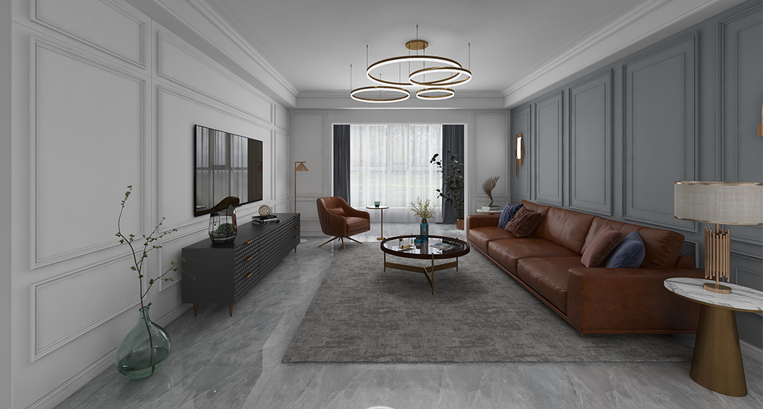 保利時代110㎡三室兩廳美式輕奢風格戶型研發(fā)效果圖
