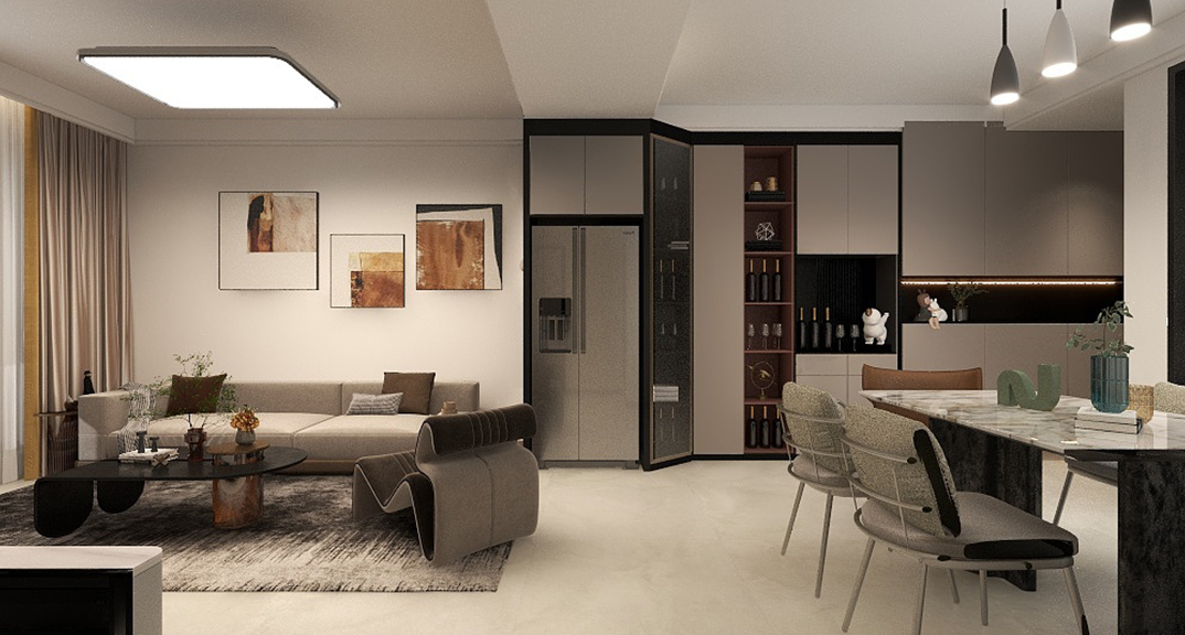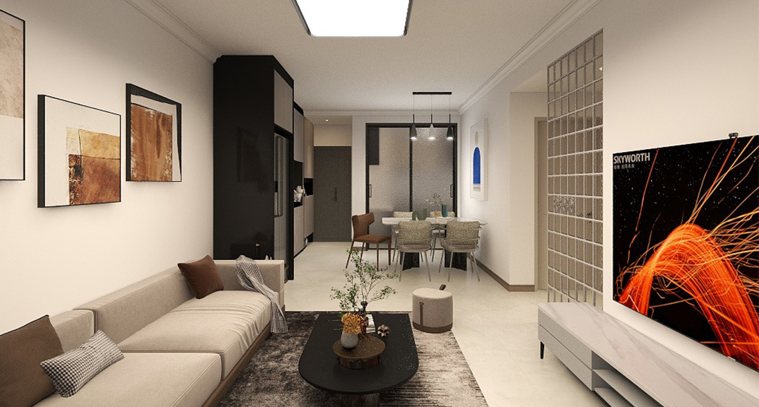 以簡潔、清晰和功能性為特征的室內(nèi)設計;它主要強調(diào)了空間的簡化和精煉,追求線條簡單、空間通透、色彩明亮、材質自然等特點,注重形式與功能的結合。他們希望有一個時尚、現(xiàn)代的功能性空間,在整個空間的設計上用了暖灰調(diào)來與簡約的線條感來相呼應,能改造出一個通透、流暢的空間感。