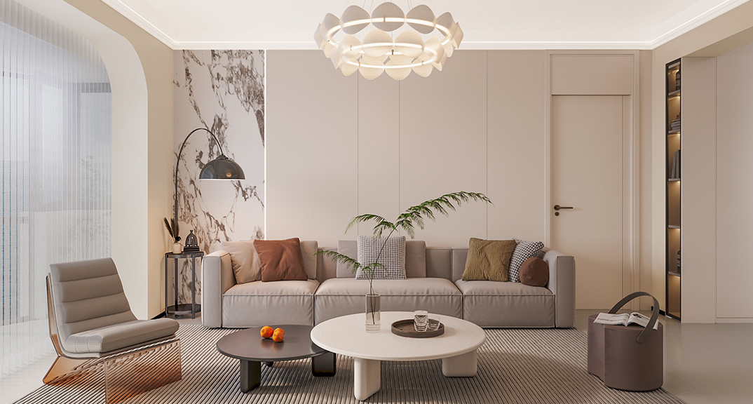 以現(xiàn)代風(fēng)格為主調(diào),主要色彩是米色、淺咖色、白色。在總體布局方面滿足寬敞明亮的需求,注重居室空間的布局與使用功能的完美結(jié)合。整體簡約又不失設(shè)計(jì)感,開放式布局空間聯(lián)通,動(dòng)線流暢。客廳米灰色系的沙發(fā),造型簡約,搭配材質(zhì)柔軟的軟裝,使客廳充滿閑話自在的空間氛圍。