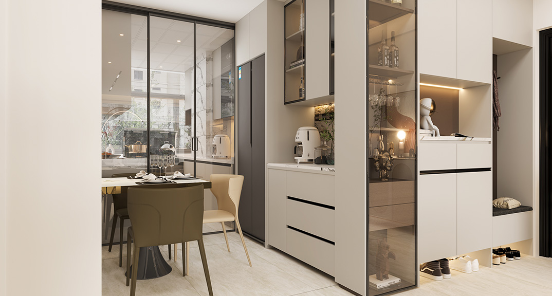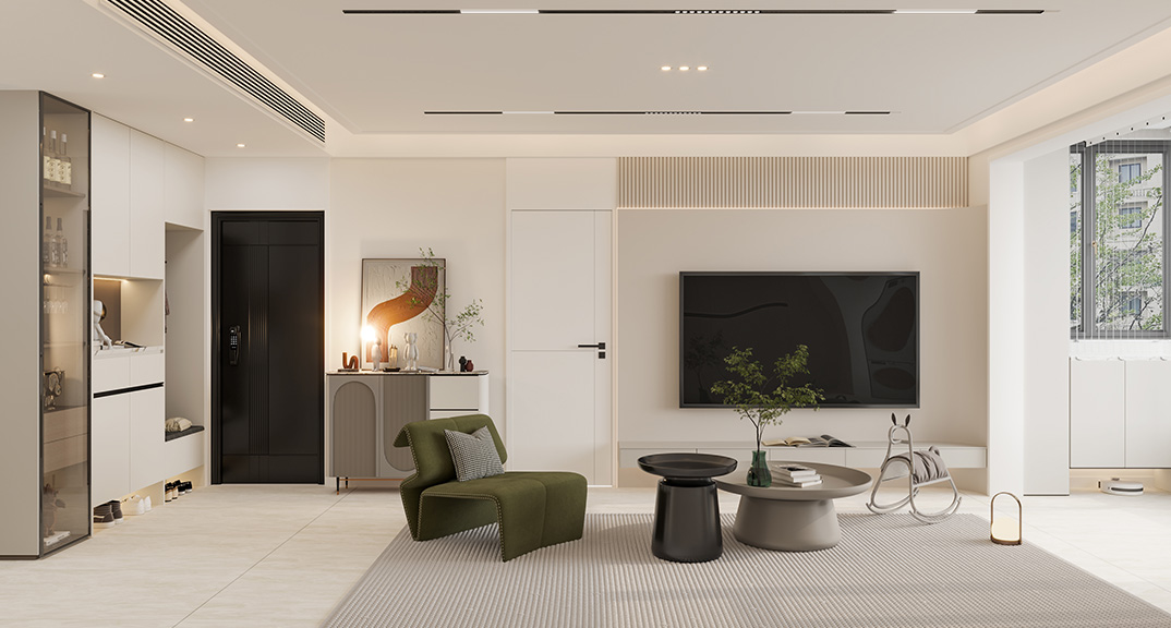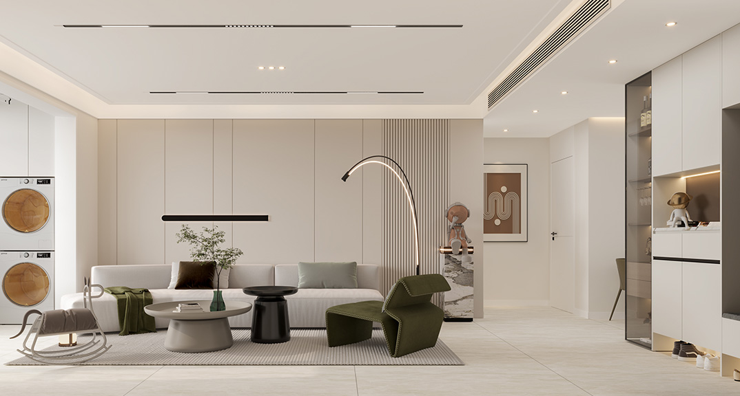 以簡潔、清晰和功能性為特征的室內(nèi)設(shè)計;它主要強調(diào)了空間的簡化和精煉,追求線條簡單、空間通透、色彩明亮、材質(zhì)自然等特點,注重形式與功能的結(jié)合。他們希望有一個時尚、現(xiàn)代的功能性空間,在整個空間的設(shè)計上用了暖灰調(diào)來與簡約的線條感來相呼應(yīng),能改造出一個通透、流暢的空間感。
