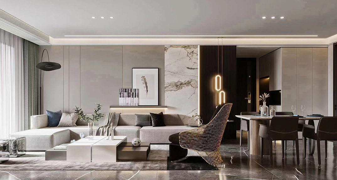 以簡潔、清晰和功能性為特征的室內(nèi)設(shè)計;它主要強(qiáng)調(diào)了空間的簡化和精煉,追求線條簡單、空間通透、色彩明亮、材質(zhì)自然等特點(diǎn),注重形式與功能的結(jié)合。他們希望有一個時尚、現(xiàn)代的功能性空間,在整個空間的設(shè)計上用了暖灰調(diào)來與簡約的線條感來相呼應(yīng),能改造出一個通透、流暢的空間感。