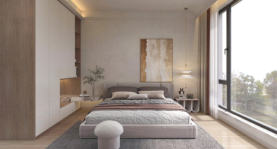 影都壹號(hào)127㎡三室兩廳臥室意式輕奢風(fēng)格效果圖