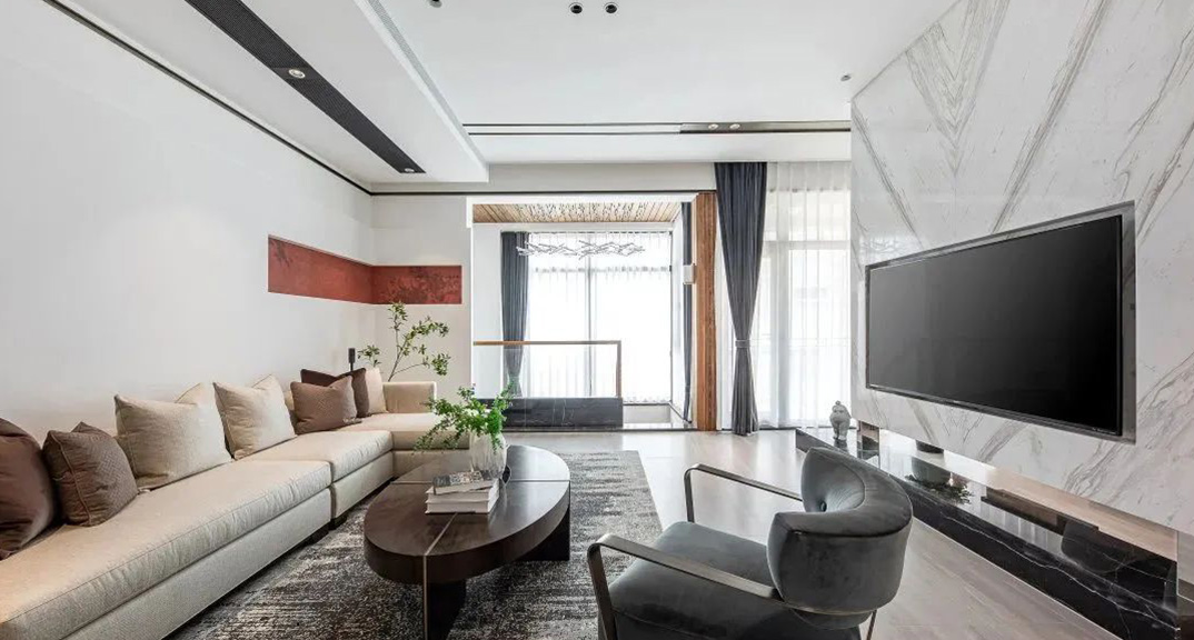 綠城留香園300㎡四室兩廳客廳新中式風格裝修案例效果圖1.jpg
