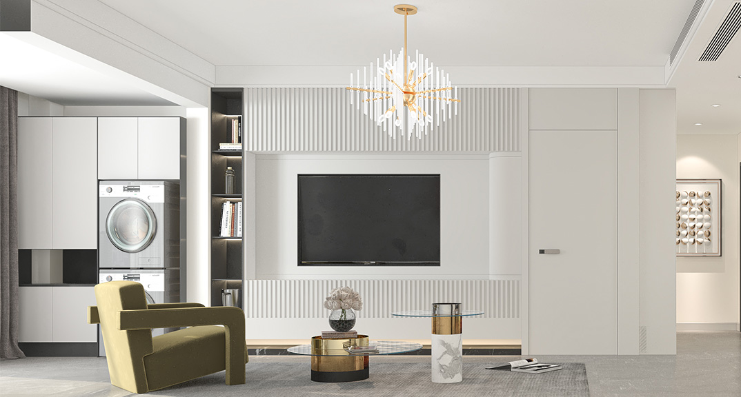 以簡潔、清晰和功能性為特征的室內(nèi)設(shè)計(jì);它主要強(qiáng)調(diào)了空間的簡化和精煉,追求線條簡單、空間通透、色彩明亮、材質(zhì)自然等特點(diǎn),注重形式與功能的結(jié)合。他們希望有一個(gè)時(shí)尚、現(xiàn)代的功能性空間,在整個(gè)空間的設(shè)計(jì)上用了暖灰調(diào)來與簡約的線條感來相呼應(yīng),能改造出一個(gè)通透、流暢的空間感。
