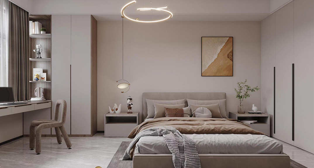 巴黎名城115㎡三室兩廳臥室現(xiàn)代簡(jiǎn)約風(fēng)格裝修案例效果圖