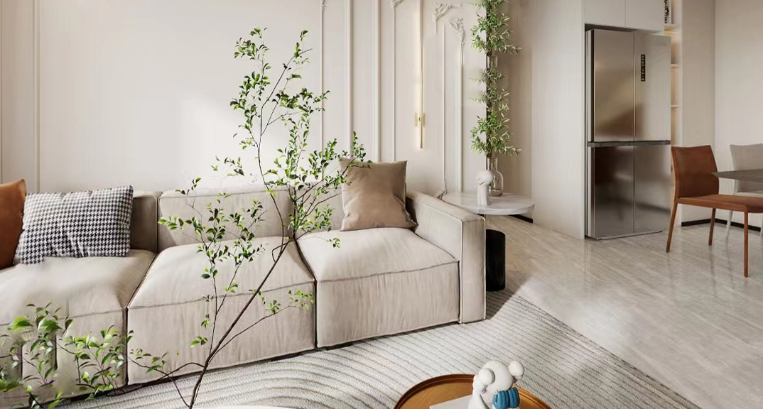 以現(xiàn)代風(fēng)格為主調(diào),主要色彩是米色、淺咖色、白色。在總體布局方面滿足寬敞明亮的需求,注重居室空間的布局與使用功能的完美結(jié)合。整體簡(jiǎn)約又不失設(shè)計(jì)感,開放式布局空間聯(lián)通,動(dòng)線流暢??蛷d米灰色系的沙發(fā),造型簡(jiǎn)約,搭配材質(zhì)柔軟的軟裝,使客廳充滿閑話自在的空間氛圍。