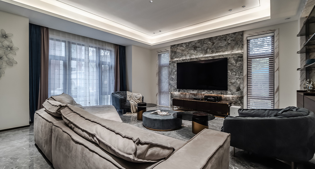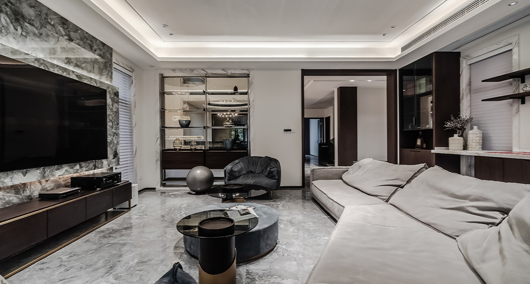 爵世名邸540㎡獨棟別墅客廳現(xiàn)代港式風格裝修案例效果圖