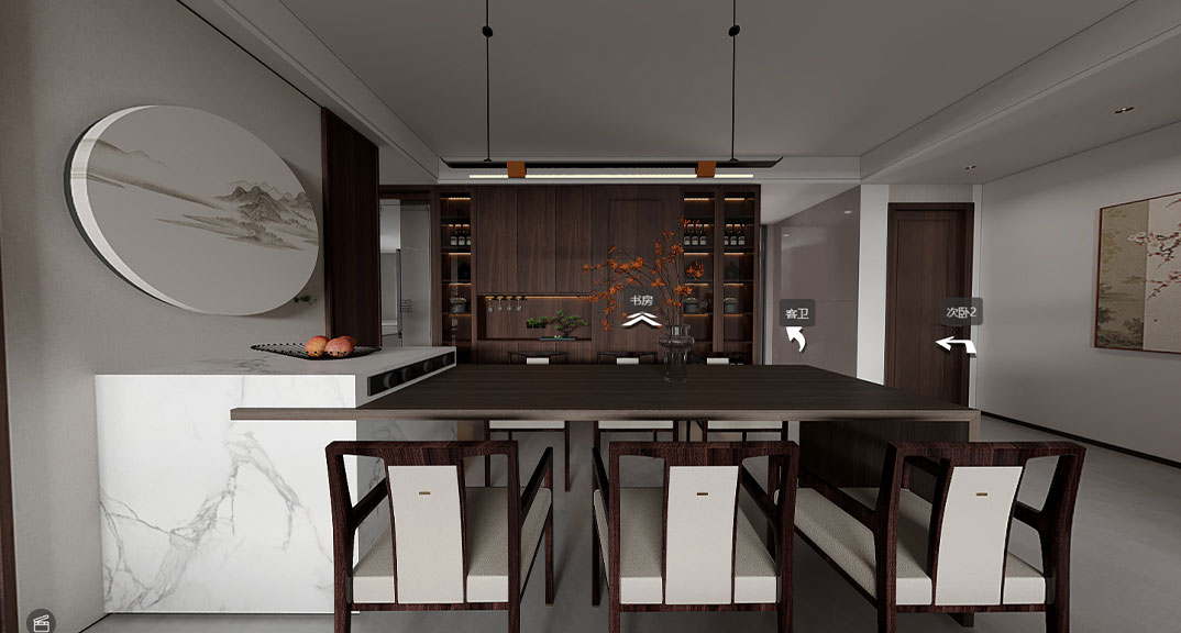 金港雅園216㎡平層新中式風(fēng)格裝修vr全景案例
