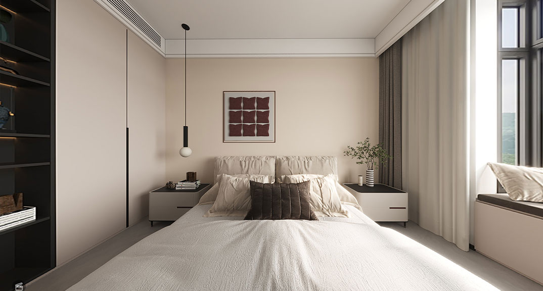本案整體以現(xiàn)代中式風(fēng)格為主,既有現(xiàn)代風(fēng)格簡(jiǎn)約、明朗的線條,又有中國(guó)傳統(tǒng)內(nèi)涵與韻味。墻面大面積使用暖色烘托整體氛圍,融洽中式與現(xiàn)代簡(jiǎn)約兩種風(fēng)格??臻g更寬闊舒適玄關(guān)收納、玄關(guān)與干區(qū)相結(jié)合,既解放的外衛(wèi)的空間客廳電視背景是一面裝飾柜,豐富了空間,增加了收納和儲(chǔ)物,美觀又實(shí)用。