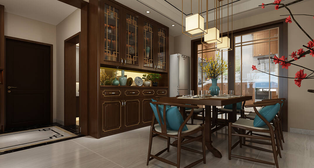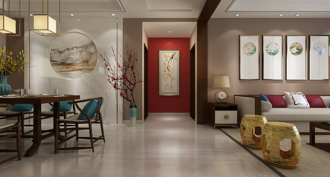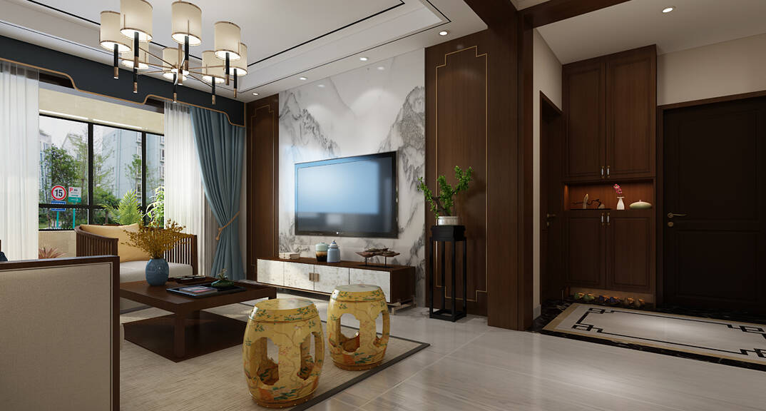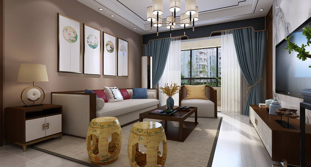 海信悅?cè)A里90㎡兩室一廳現(xiàn)代中式風格案例效果圖