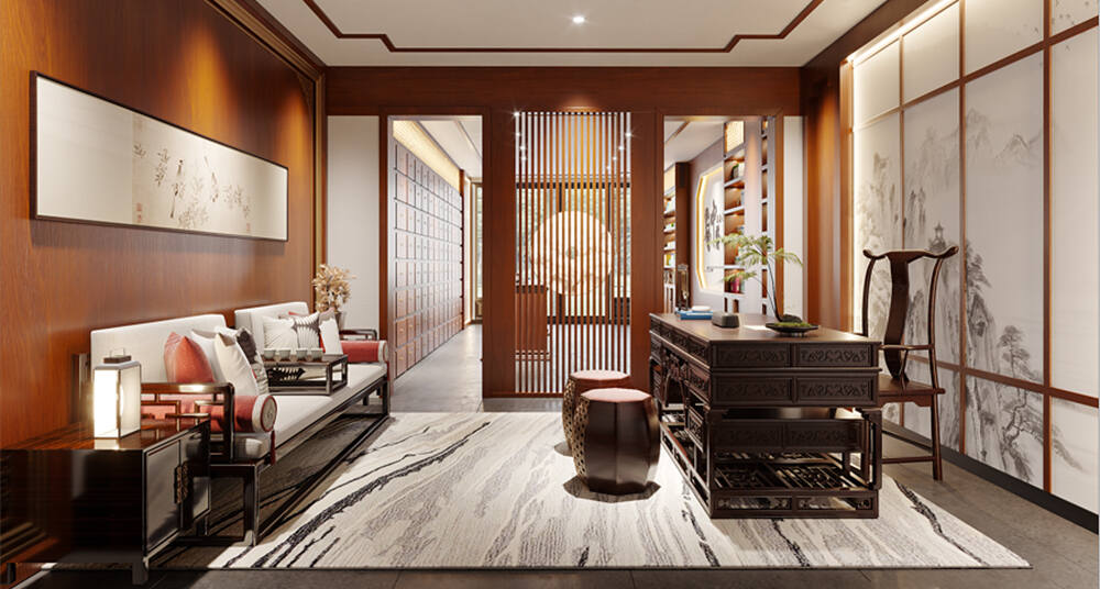 新中式風(fēng)格是中式元素與現(xiàn)代材質(zhì)的巧妙兼柔的布局風(fēng)格,它同時(shí)明清家具、窗欞、布藝床品相互輝映,經(jīng)典地再現(xiàn)了移步變景的精妙小品。新中式風(fēng)格還繼承明清時(shí)期家居理念的精華,將其中的經(jīng)典元素提煉并加以豐富,同時(shí)改變原有空間布局中等級(jí)、尊卑等封建思想,給傳統(tǒng)家居文化注入了新的氣息。