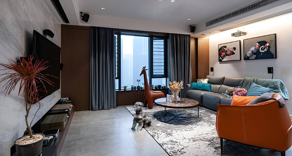 本案設(shè)計(jì)風(fēng)格為意式輕奢,拒絕了濃烈的色彩,以一種簡(jiǎn)單、純粹的設(shè)計(jì)語(yǔ)言,回歸生活的本質(zhì),留存給居住者更多生活想象的空間。 整體空間灰橙色、駝色、與淺暖灰色調(diào)展現(xiàn)輕奢低調(diào)的高級(jí)質(zhì)感,簡(jiǎn)約時(shí)尚的家具又增添了一份現(xiàn)代感,重新梳理了空間功能和尺寸,客廳陽(yáng)臺(tái)一體化設(shè)計(jì),最大限度引入自然光,高級(jí)灰搭配中性色系木飾面,打造一個(gè)舒適的高品質(zhì)空間。在空間設(shè)計(jì)與色彩配搭上,精準(zhǔn)地把控節(jié)奏,用設(shè)計(jì)表達(dá)空間的包容性,更多的是通過(guò)人性化思考,創(chuàng)造一個(gè)功能性完整的舒適生活空間。大塊的木飾面、金屬元素和燈 光的碰撞搭配,凸顯出強(qiáng)大張力,共同打造出意式輕奢腔調(diào)十足的時(shí)尚與質(zhì)感。