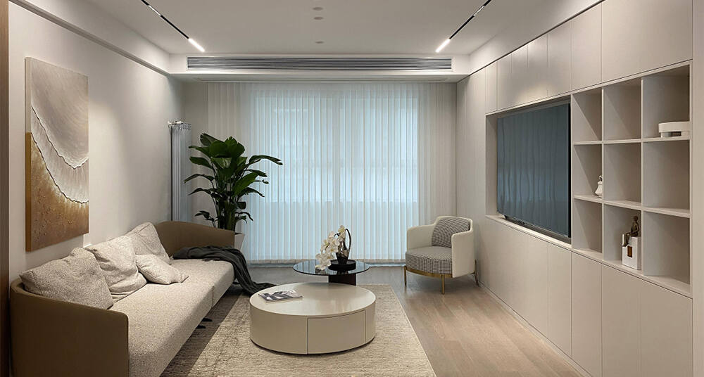 以現(xiàn)代風(fēng)格為主調(diào),主要色彩是米色、淺咖色、白色。在總體布局方面滿(mǎn)足寬敞明亮的需求,注重居室空間的布局與使用功能的完美結(jié)合。整體簡(jiǎn)約又不失設(shè)計(jì)感,開(kāi)放式布局空間聯(lián)通,動(dòng)線(xiàn)流暢??蛷d米灰色系的沙發(fā),造型簡(jiǎn)約,搭配材質(zhì)柔軟的軟裝,使客廳充滿(mǎn)閑話(huà)自在的空間氛圍。