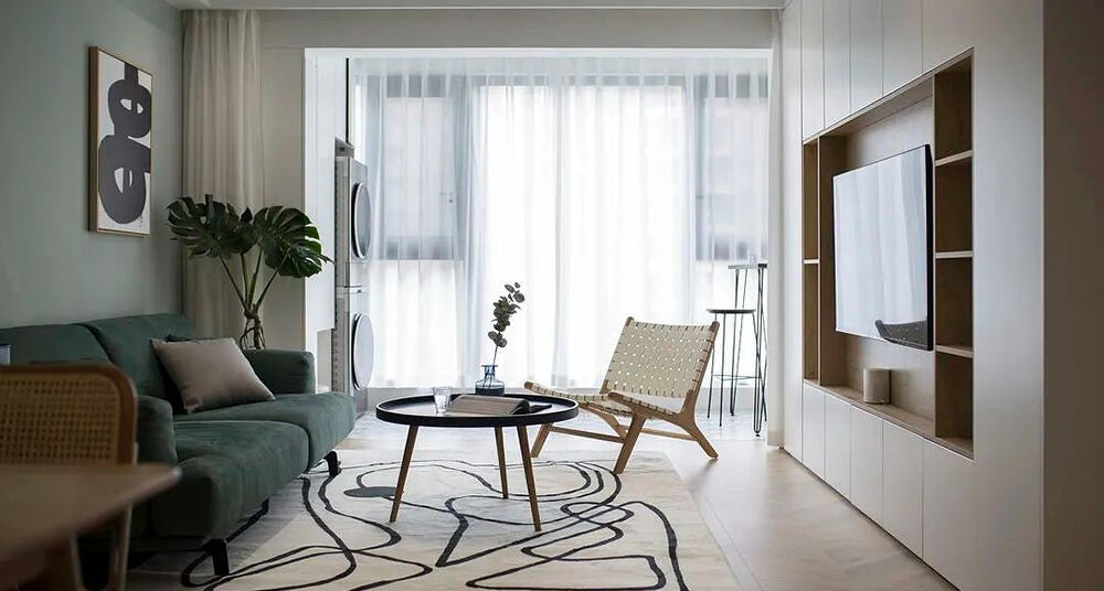 該套房屋面積為89平方米,是一套二居室的全新裝修。其設(shè)計(jì)巧妙,旨在提高居家生活的幸福感。例如,無把手的櫥柜門、弧形的墻角、高低不一的櫥柜臺面以及分離式的衛(wèi)生間等等??蛷d與陽臺相連,創(chuàng)造了更寬敞的視覺效果。輕柔的白色紗簾使客廳光線層次更加柔和,增添了一絲朦朧之美。廚房經(jīng)過封閉處理,與生活陽臺分隔開,只留了一個(gè)小窗戶,確保了廚房的適當(dāng)通風(fēng)和采光。黑色的櫥柜搭配灰色花磚,使廚房散發(fā)出神秘感。傳統(tǒng)的油煙灶具被取消,取而代之的是集成灶,整體更加美觀。臥室作為一個(gè)靜謐舒適的休息場所,裝修簡約并回歸睡眠空間本質(zhì)。淺灰色的背景墻設(shè)計(jì)以及墻上的木地板裝飾,增加了床頭區(qū)域的延伸感,同時(shí)呈現(xiàn)出層次感。原戶型只有一個(gè)面積不大的衛(wèi)生間,為了提高實(shí)用性,在改造和空間整合的基礎(chǔ)上,實(shí)現(xiàn)了三個(gè)功能區(qū)的獨(dú)立設(shè)計(jì)。