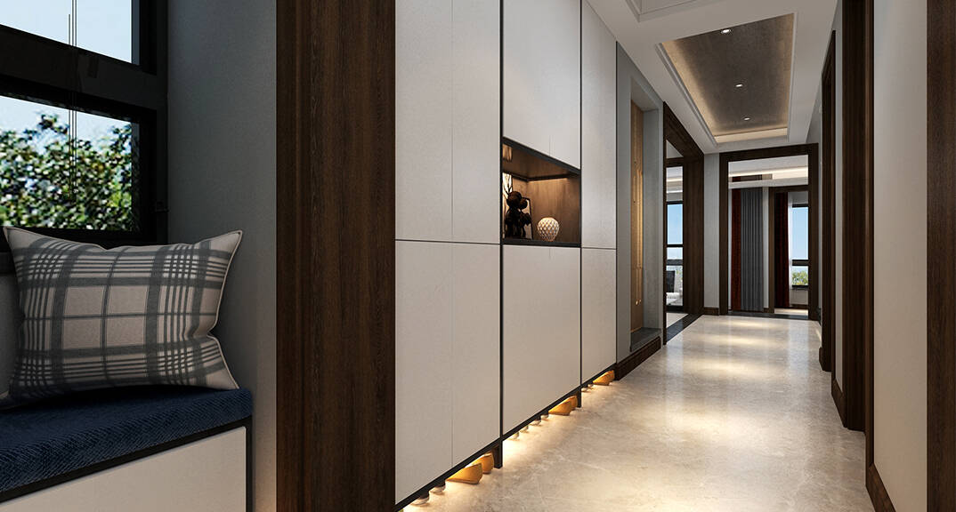 本案整體以現(xiàn)代中式風(fēng)格為主,既有現(xiàn)代風(fēng)格簡(jiǎn)約、明朗的線條,又有中國(guó)傳統(tǒng)內(nèi)涵與韻味。墻面大面積使用暖色烘托整體氛圍,融洽中式與現(xiàn)代簡(jiǎn)約兩種風(fēng)格。空間更寬闊舒適玄關(guān)收納、玄關(guān)與干區(qū)相結(jié)合,既解放的外衛(wèi)的空間客廳電視背景是一面裝飾柜,豐富了空間,增加了收納和儲(chǔ)物,美觀又實(shí)用。