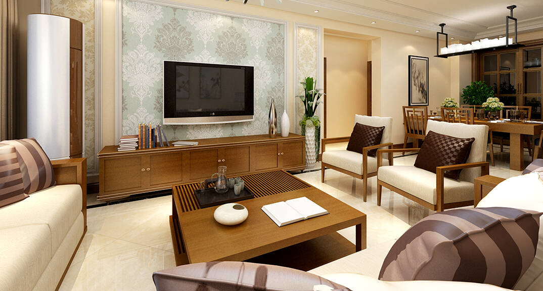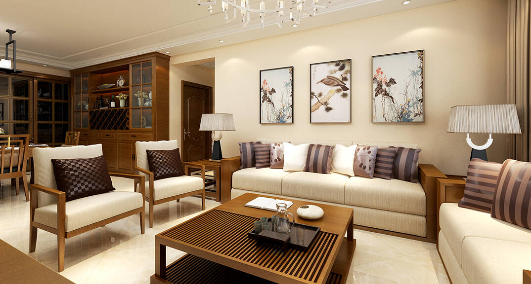 金鳳凰銘品127m2新中式風(fēng)格-客廳效果圖