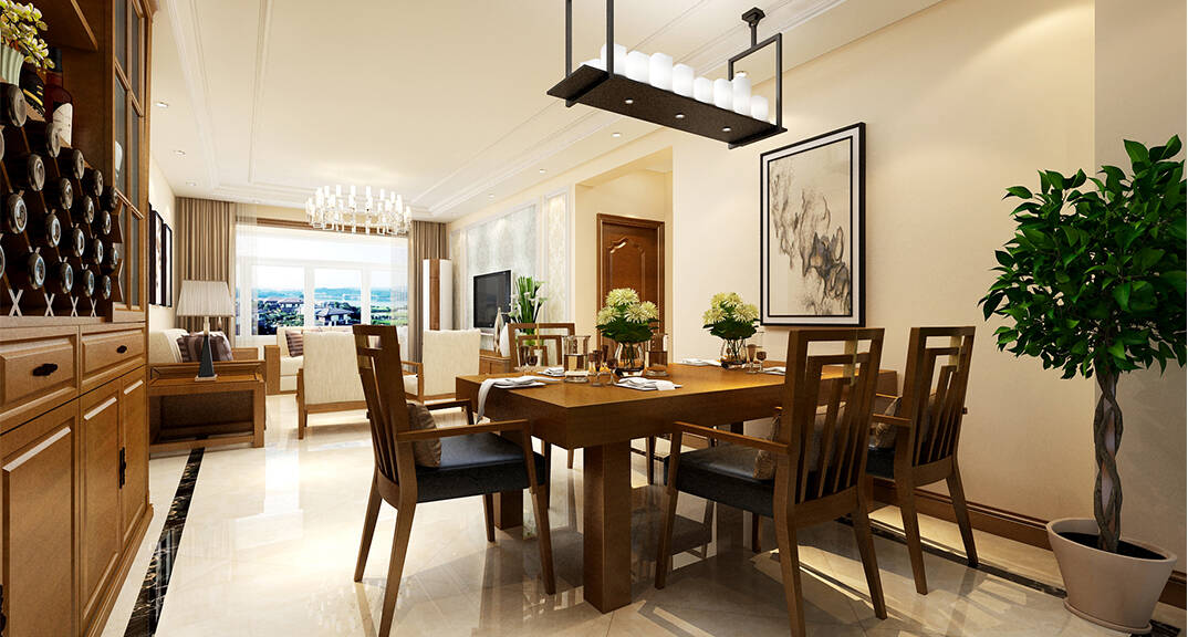 金鳳凰銘品127m2新中式風(fēng)格-餐廳效果圖