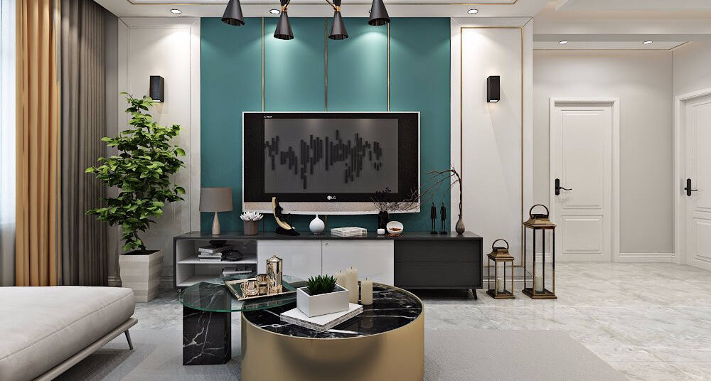 電視墻采用藍綠色的乳膠漆,以突出其特點,而沙發(fā)墻則裝飾有藝術(shù)品,與布藝沙發(fā)相得益彰。臥室以整體白色裝飾,衣柜也選擇了白色,通過裝飾品和地毯的色彩變換,避免了視覺疲勞。臥室的床頭背景墻采用與電視墻相同的色調(diào)。廚房的設(shè)計以一色調(diào)定制為主,瓷磚選擇淺色系,而櫥柜則采用深色系,形成鮮明對比。衛(wèi)生間采用干濕分離設(shè)計,臺上盆的選擇使其更加大氣一些。餐廳則通過裝飾畫的點綴和射燈的照明來提亮空間。