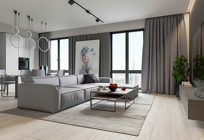 以簡潔、清晰和功能性為特征的室內(nèi)設(shè)計;它主要強(qiáng)調(diào)了空間的簡化和精煉,追求線條簡單、空間通透、色彩明亮、材質(zhì)自然等特點,注重形式與功能的結(jié)合。他們希望有一個時尚、現(xiàn)代的功能性空間,在整個空間的設(shè)計上用了暖灰調(diào)來與簡約的線條感來相呼應(yīng),能改造出一個通透、流暢的空間感。