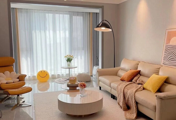 以現(xiàn)代風(fēng)格為主調(diào),主要色彩是米色、淺咖色、白色。在總體布局方面滿足寬敞明亮的需求,注重居室空間的布局與使用功能的完美結(jié)合。整體簡約又不失設(shè)計感,開放式布局空間聯(lián)通,動線流暢??蛷d米灰色系的沙發(fā),造型簡約,搭配材質(zhì)柔軟的軟裝,使客廳充滿閑話自在的空間氛圍。