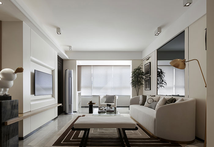 以簡潔、清晰和功能性為特征的室內(nèi)設(shè)計(jì);它主要強(qiáng)調(diào)了空間的簡化和精煉,追求線條簡單、空間通透、色彩明亮、材質(zhì)自然等特點(diǎn),注重形式與功能的結(jié)合。他們希望有一個(gè)時(shí)尚、現(xiàn)代的功能性空間,在整個(gè)空間的設(shè)計(jì)上用了暖灰調(diào)來與簡約的線條感來相呼應(yīng),能改造出一個(gè)通透、流暢的空間感。
