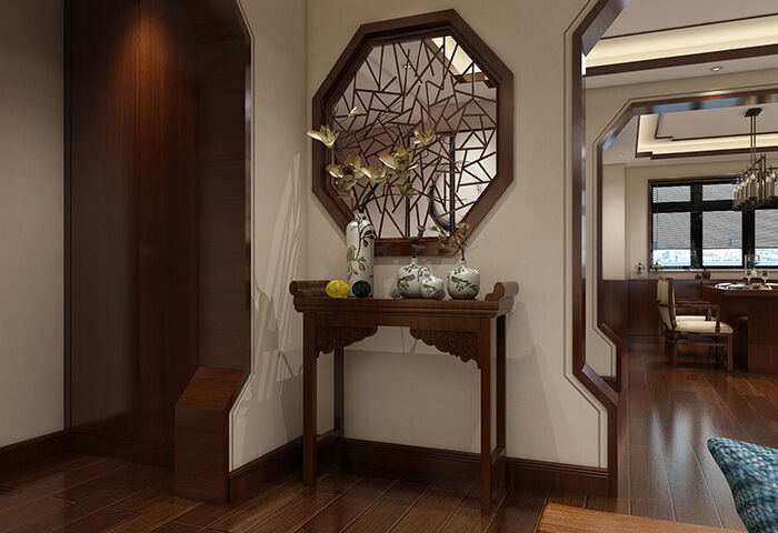 本案整體以現(xiàn)代中式風格為主,既有現(xiàn)代風格簡約、明朗的線條,又有中國傳統(tǒng)內(nèi)涵與韻味。墻面大面積使用暖色烘托整體氛圍,融洽中式與現(xiàn)代簡約兩種風格??臻g更寬闊舒適玄關(guān)收納、玄關(guān)與干區(qū)相結(jié)合,既解放的外衛(wèi)的空間客廳電視背景是一面裝飾柜,豐富了空間,增加了收納和儲物,美觀又實用。