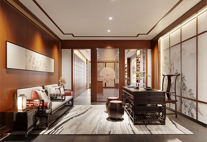 楓林小鎮(zhèn)160㎡聯(lián)排別墅新中式風(fēng)格裝修案例效果圖