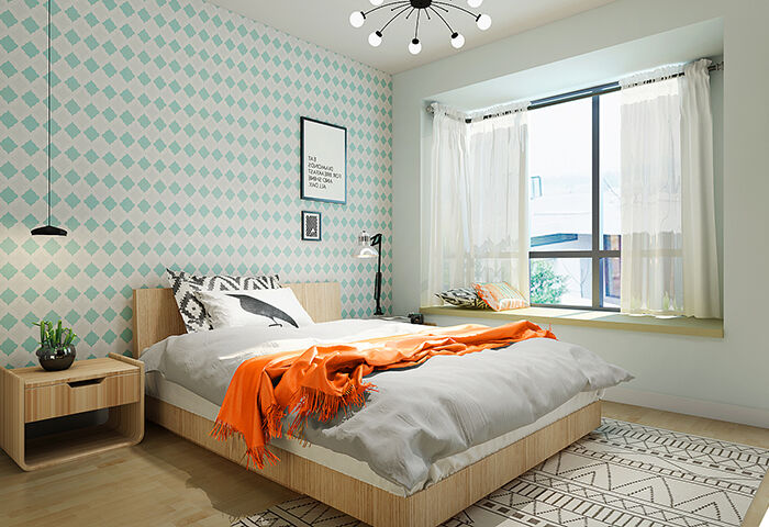 臥室應(yīng)打造溫馨舒適的氛圍,因?yàn)榕P室是家人休息的地方,空氣質(zhì)量至關(guān)重要。選擇墻紙時(shí)應(yīng)考慮使用天然環(huán)保材料,如純紙墻紙、木纖維墻紙等。休息空間需要營造溫馨氛圍,因此宜選擇柔和的色彩和樸素的圖案,避免過于繁復(fù)和視覺沖擊強(qiáng)烈的圖案和花色,以免影響主人的休息質(zhì)量。