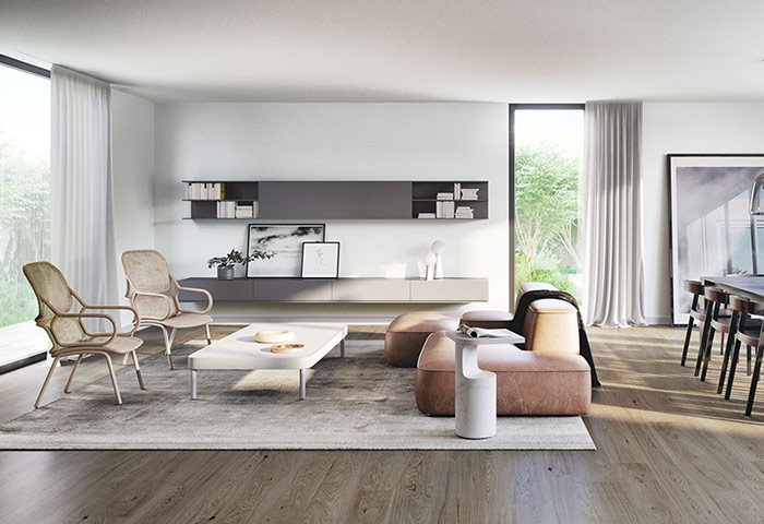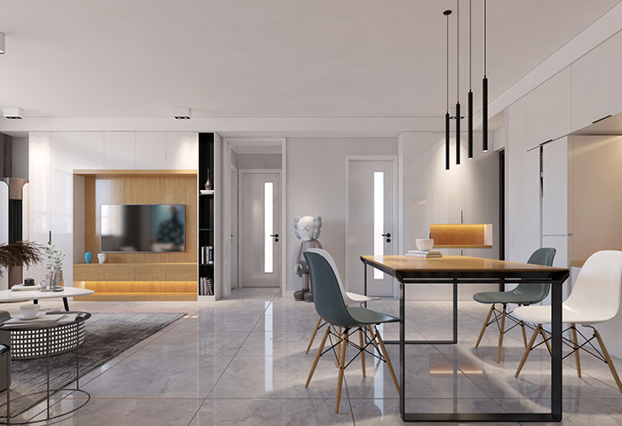 以簡潔、清晰和功能性為特征的室內(nèi)設(shè)計;它主要強(qiáng)調(diào)了空間的簡化和精煉,追求線條簡單、空間通透、色彩明亮、材質(zhì)自然等特點(diǎn),注重形式與功能的結(jié)合。他們希望有一個時尚、現(xiàn)代的功能性空間,在整個空間的設(shè)計上用了暖灰調(diào)來與簡約的線條感來相呼應(yīng),能改造出一個通透、流暢的空間感。